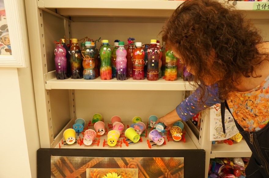 (授業の中で学生が製作した作品は、とてもきれいにディスプレイされています。
