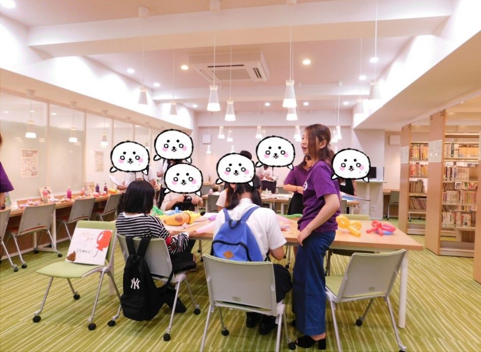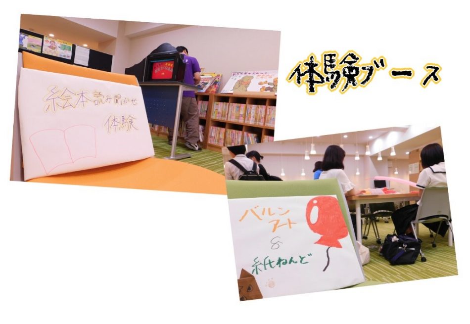学生スタッフが授業で作成した作品を利用した「あそびブース」を設け、様々なあそびを体験していただきました。
