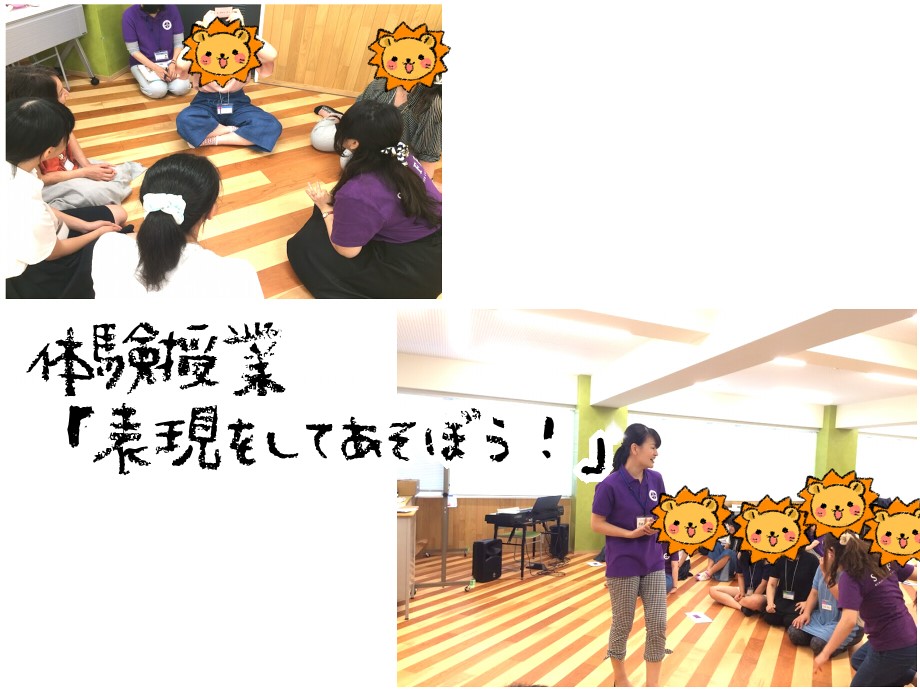 今回の体験授業は、松本亜香里先生による「表現をしてあそぼう!」と、渡辺先生による「レクリエーションであそびをしよう!」でした。