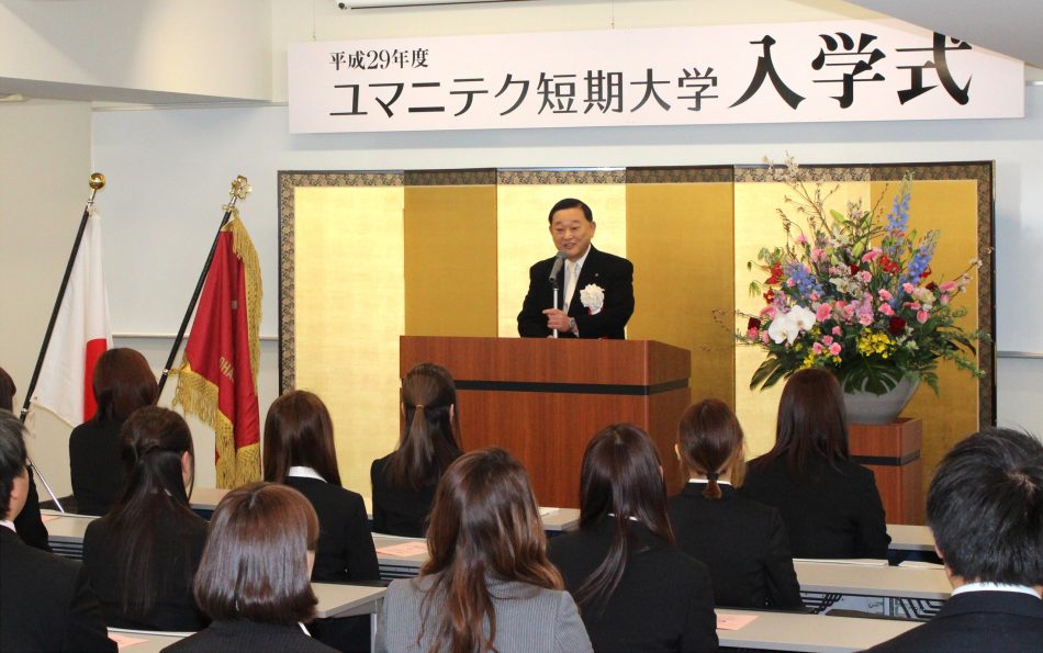先日、ユマニテク短期大学 幼児保育学科の入学式を執り行いました。