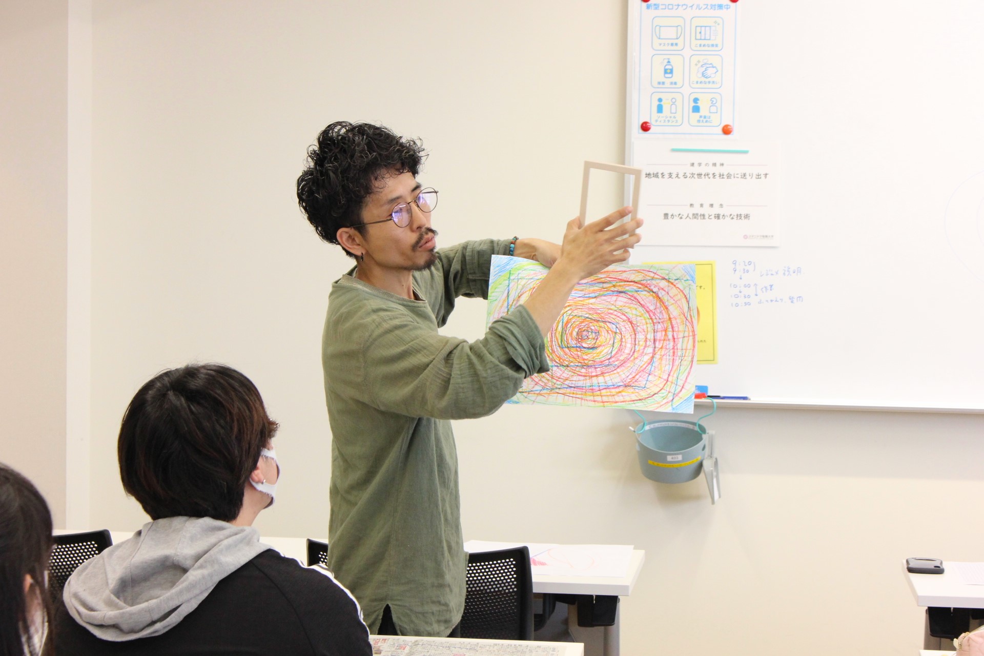 2年生「幼児の人間関係」の授業において、四日市市出身の絵本作家「なるかわ しんご先生」をゲスト講師としてお迎えしました📚