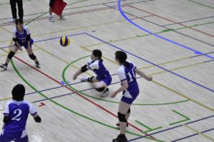2セット目は、体育館にも相手にも慣れてきたためか、堂々とプレーをしていきます。サーブレシーブが多少乱れていても、全員でカバーし合い、トスに繋げ、難しいハイボールもレフト後藤が、絶妙な場所にフェイントを落としたり、エース近藤が様々なコースにスパイクを打ち分けたりと、相手を翻弄します。ライト林も相手エースの強打をブロックし得点に繋げるなど、全員が躍動していきます。そして内田、近藤の連続サービスエースが起点となり、逆転に成功、勢いそのままに20点を先に取ります。相手はたまらずタイムアウトを要求、(フィリアーズにとって、相手にタイムアウトを取られる経験は始めてです!)緊迫した試合展開となります。しかしながら、フィリアーズの勢いはここまででした。終盤22-18の場面から、一つ、また一つとミスが重なり22-24と逆転を許します。何とか追いすがり、23-24としますが、近藤のワンタッチも空しく、相手レフトが強打を打ち込み23-25でゲームセットとなりました。