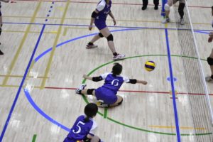 副将近藤の力強いスパイクでした。数プレーのうちに、落ち着きを得た選手たちは、序盤、一進一退の攻防を繰り広げます。