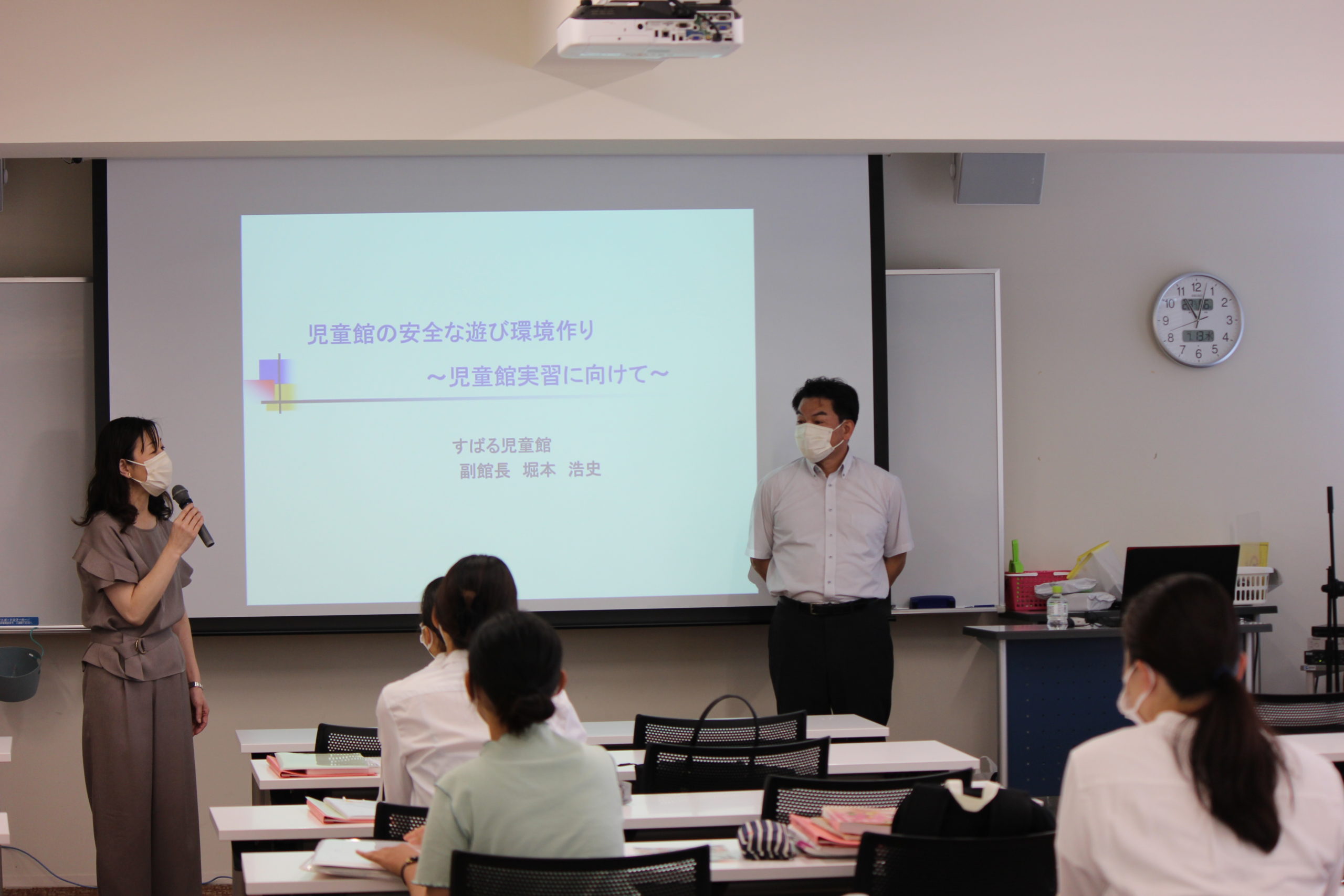 社会福祉法人三重清暉会すばる児童館副館長の堀本浩史先生から、「児童館の安全な遊び環境作りー児童館実習にむけてー」をテーマにお話しいただきました。