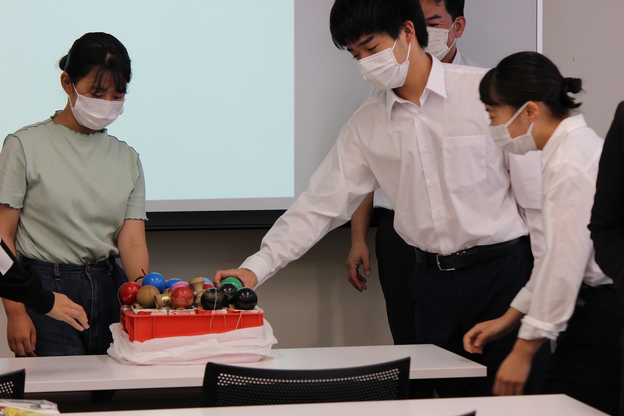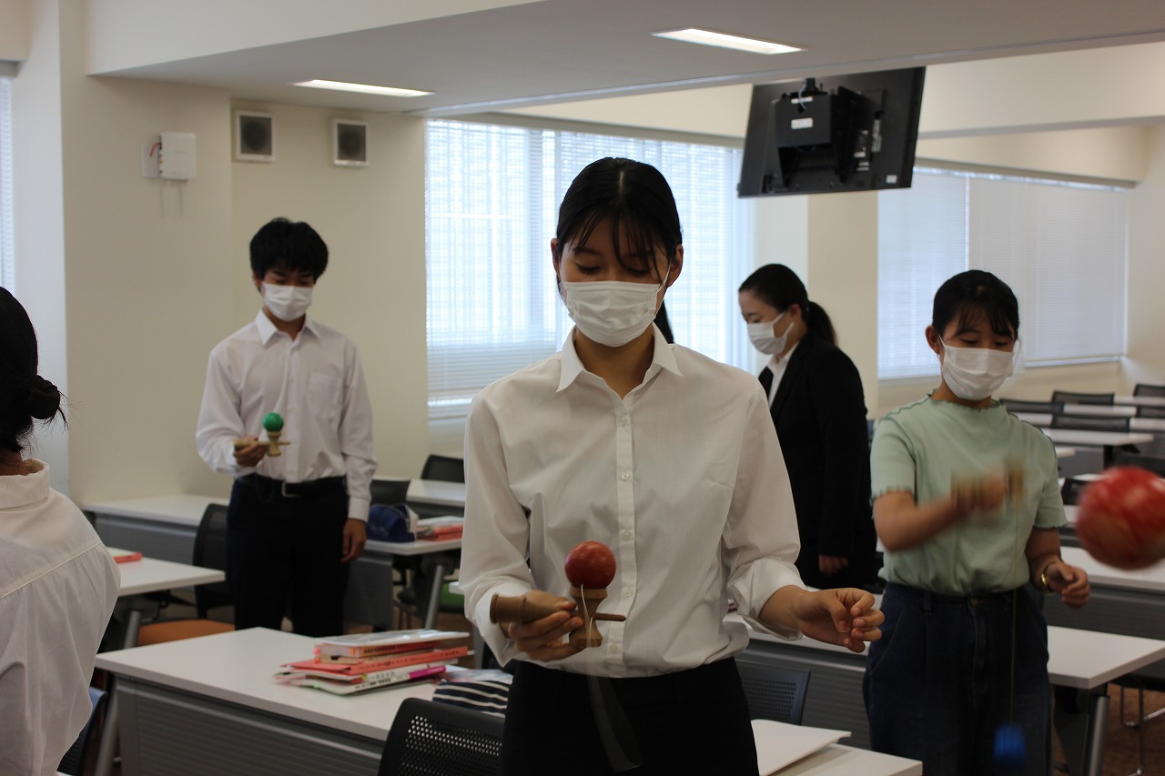 けん玉遊びを教えていただきました。なかなか難しかったです・・・