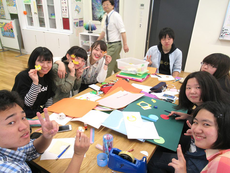 学生が作ったカラフルな魚が釣れて、満足げな笑顔にあふれていました。